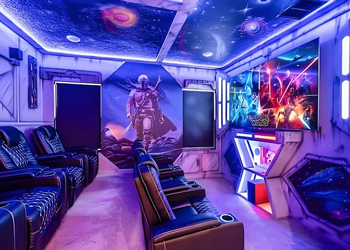 6Q Cinema, Game Room E Spa Privado - 18 Hospedes villa includes a dining area with an electric kettle, a refrigerator, and kitchenware. Guests have the option of dining at Calypso Bar and Grill, which is nearly 5 minutes' walk away. 6Q Cinema, Game Room E Spa Privado - 18 Hospedes villa is 22 km from Church Street train station, which makes tourist attractions in Orlando easily accessible.